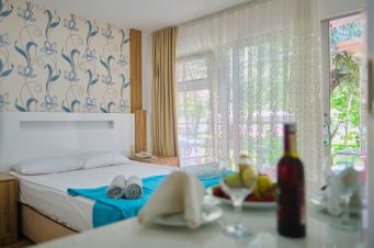 All Inclusive – закуска, обяд и вечеря с включени междинни хранения, алкохолни и безалкохолни напитки - без лимит (съгласно концепцията на хотела).