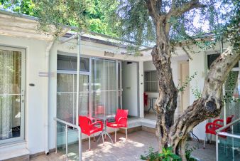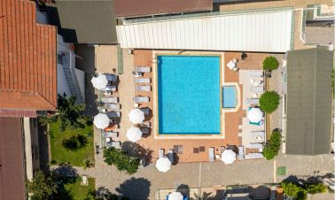 На 50 м. от плажа. Чадъри, шезлонги и матраци на плажа и на басейна - безплатно.