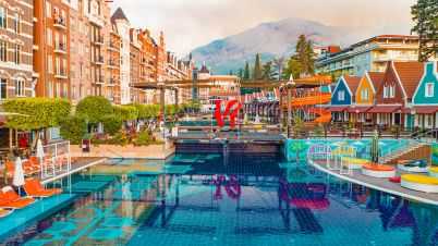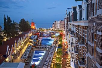 3 ресторанта, 7 бара, кафене, сладкарница, открит и закрит басейн, 2 водни пързалки, СПА център, конферентна зала