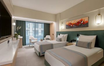 Стаи Main Building - Atrium room (изглед градина - 33 м2); Deluxe room (изглед градина, планина или море – 36 м2), Deluxe Superior room (спалня, единично и допълнитлено легло, изглед градина, планина или море,– 38 м2), Deluxe Superior Family (две помещения, спалня и две единични легла, две бани, 2 балкона, изглед градина или планина – 71 м2), Deluxe room (изглед градина или планина – 36 м2), Deluxe Family (две помещения, спалня и двуетажно легло, две бани, изглед градина – 58 м2).