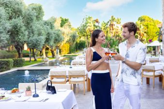 Основен ресторант, 7 а-ла-карт ресторанта (с предварителна резервация), 12 бара, дискотека, 3 открити и 2 закрити басейна, аквапарк с 5 водни пързалки, магазини, Спа - център, амфитеатър, кино, 8 конферентни зали. За децата: Детски ресторант, детска площадка, бебешки клуб (1-2 г.), мини клуб (3-7 г.), джуниър клуб (8-12 г.), тийн клуб (13-17 г.), 3 детски басейна, парк, детска дискотека. Безплатни услуги: Турска баня, сауна, фитнес, дартс, билярд, тенис на маса, тенис на корт, плажен волейбол, баскетбол, футбол, аеробика, мини-голф, безмоторни водни спортове, уроци по танци, кино, анимация, интернет. Платени услуги: Масажи, козметични услуги, фризьор, магазини, боулинг, видеоигри, арт студио, лекар, моторни водни спортове, уроци по голф, уроци по тенис, осветление за тенис кортовете.