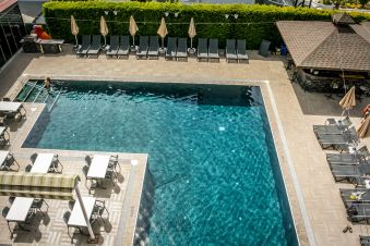 Градски плаж на 50 м от хотела. Чадъри, шезлонги и матраци на плажа срещу заплащане, при басейна – безплатно.