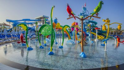 За децата: 1 детски басейн, водни пързалки, детска площадка, мини клуб (4-12г),