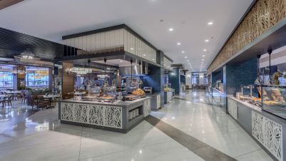 Основен ресторант, 1 а-ла-карт ресторант с предварителна резервация, съгласно концепцията на хотела), сладкарница, бургер бар Burgerland (24/7), 9 бара (1 от които 24/7 и 2 от които са разположени на територията на Etftalia Island, 8 открити басейна, водни пързалки, СПА център, дискотека (на територията на Etftalia Island), магазини, конферентна зала, паркинг.