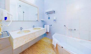 климатик, Wi-Fi интернет (срещу заплащане), телевизор, сателитна телевизия, сейф, мини бар, телефон, тераса/балкон, баня с вана или душ, сешоар.
